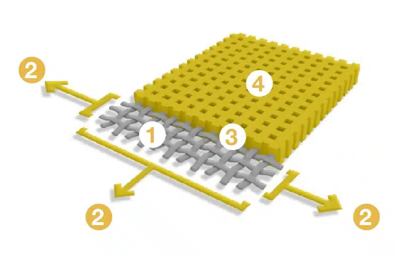 Constituée de micro-câbles de polyester haute ténacité, l’armature tissée apporte à la toile une combinaison idéale de légèreté, de solidité et de durabilité, même sur des installations très exposées.