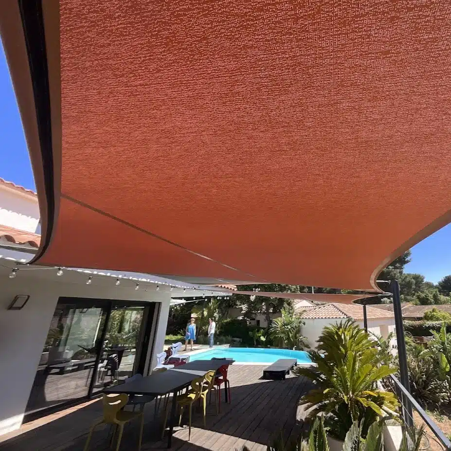 Chez Otaké, nous utilisons exclusivement des textiles techniques de très haute performance pour garantir des voiles d’ombrage fiables, durables et esthétiques.